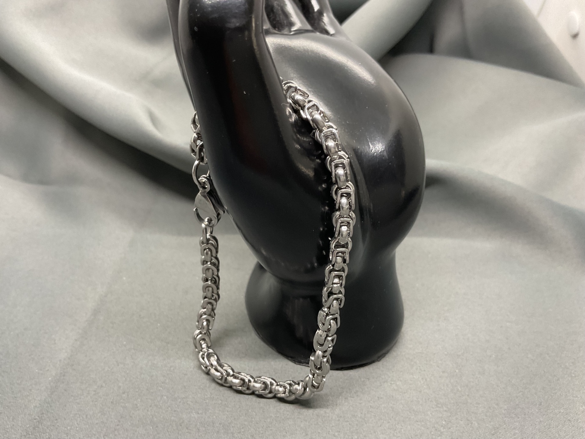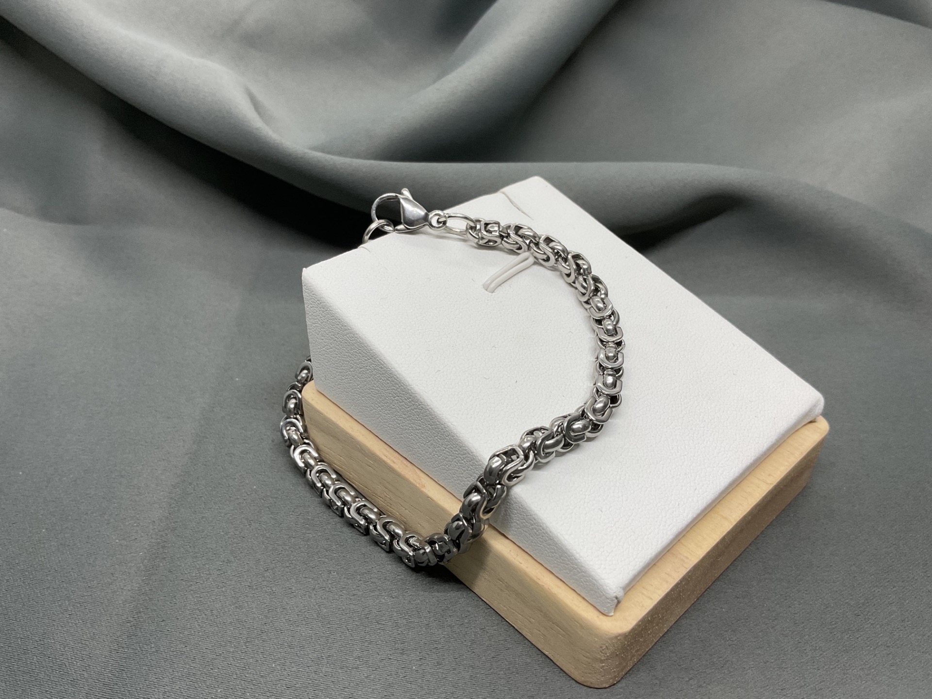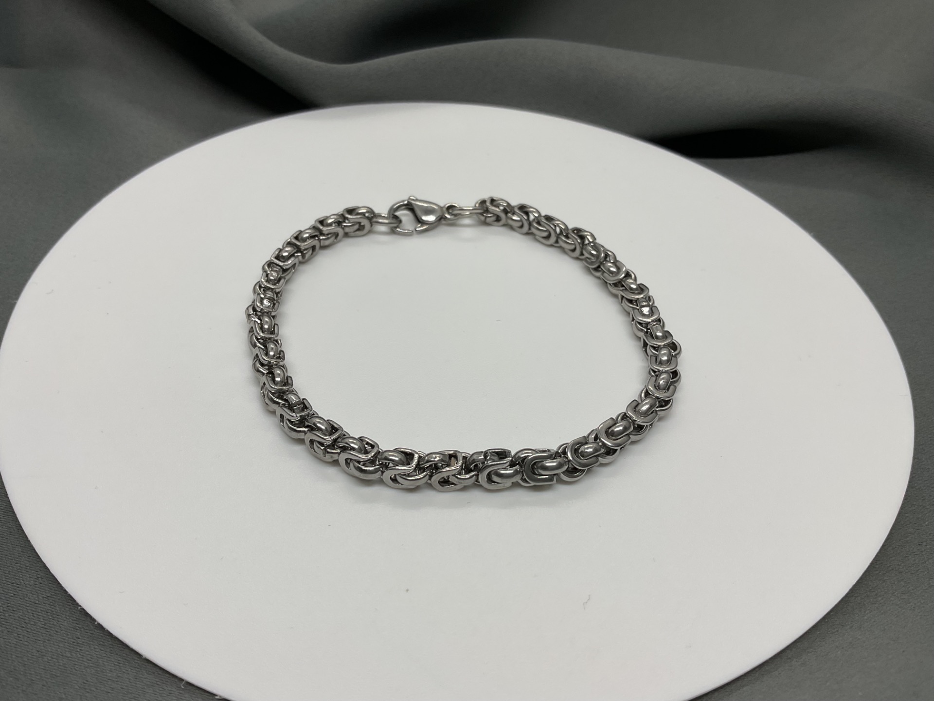 Impresionează cu un accesoriu care îmbină măiestria tradițională cu durabilitatea modernă. Această brățară, realizată prin împletirea minuțioasă a zalelor din oțel inoxidabil, creează un model dens, bogat și texturat, specific stilului bizantin. Designul său tridimensional oferă o prezență impunătoare la încheietură, fiind o bijuterie care nu trece neobservată. Este accesoriul perfect pentru bărbatul care apreciază detaliile complexe și calitatea unui material care nu se demodează niciodată.