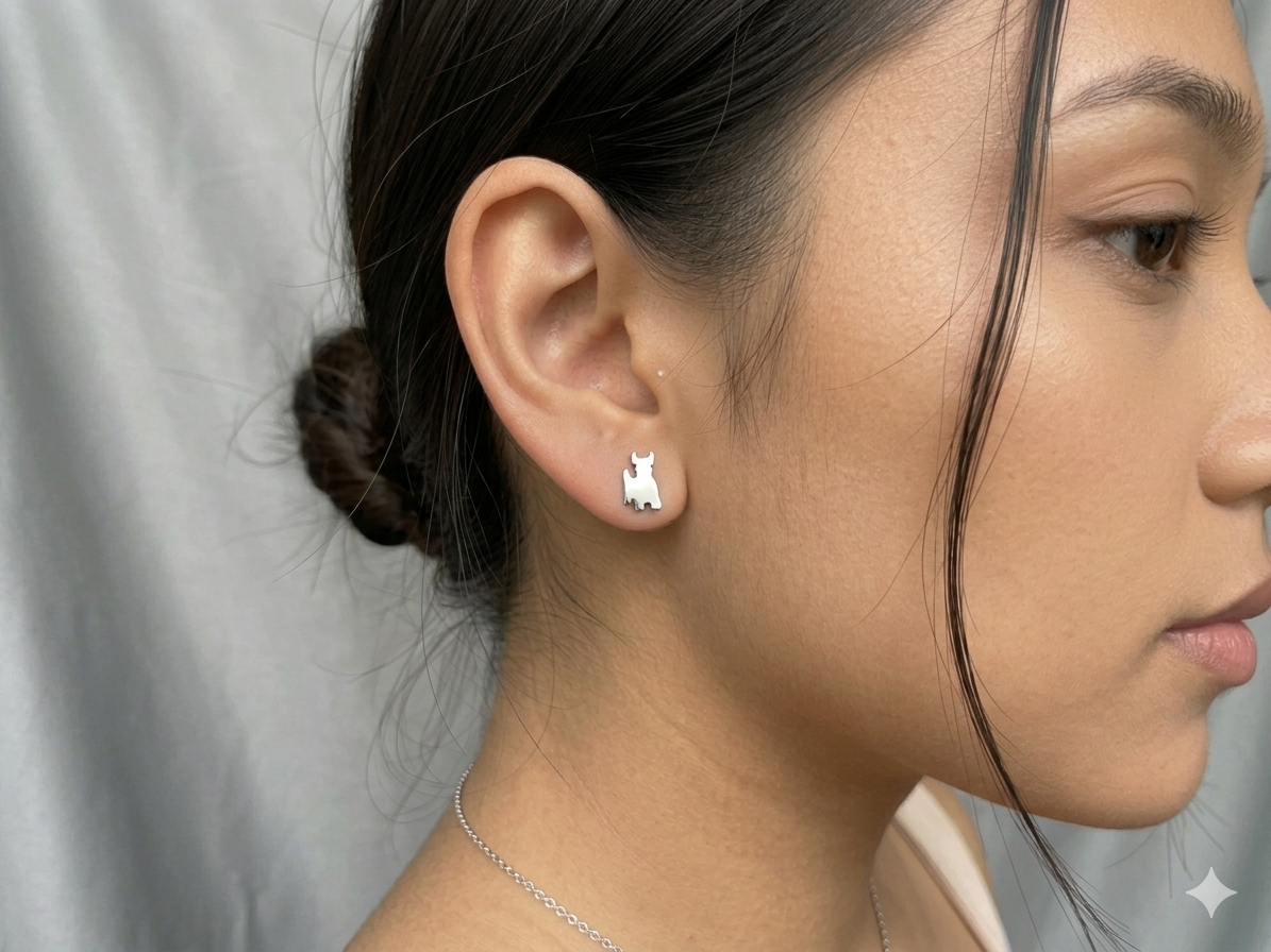 Sărbătorește dragostea pentru cel mai bun prieten al omului cu acești cercei delicați în formă de cățeluș Terrier. Designul lor plin de caracter surprinde silueta inconfundabilă a rasei, oferind un look jucăuș, dar elegant. Sunt accesoriul ideal pentru iubitorii de animale care caută o bijuterie discretă, dar cu o semnificație puternică.