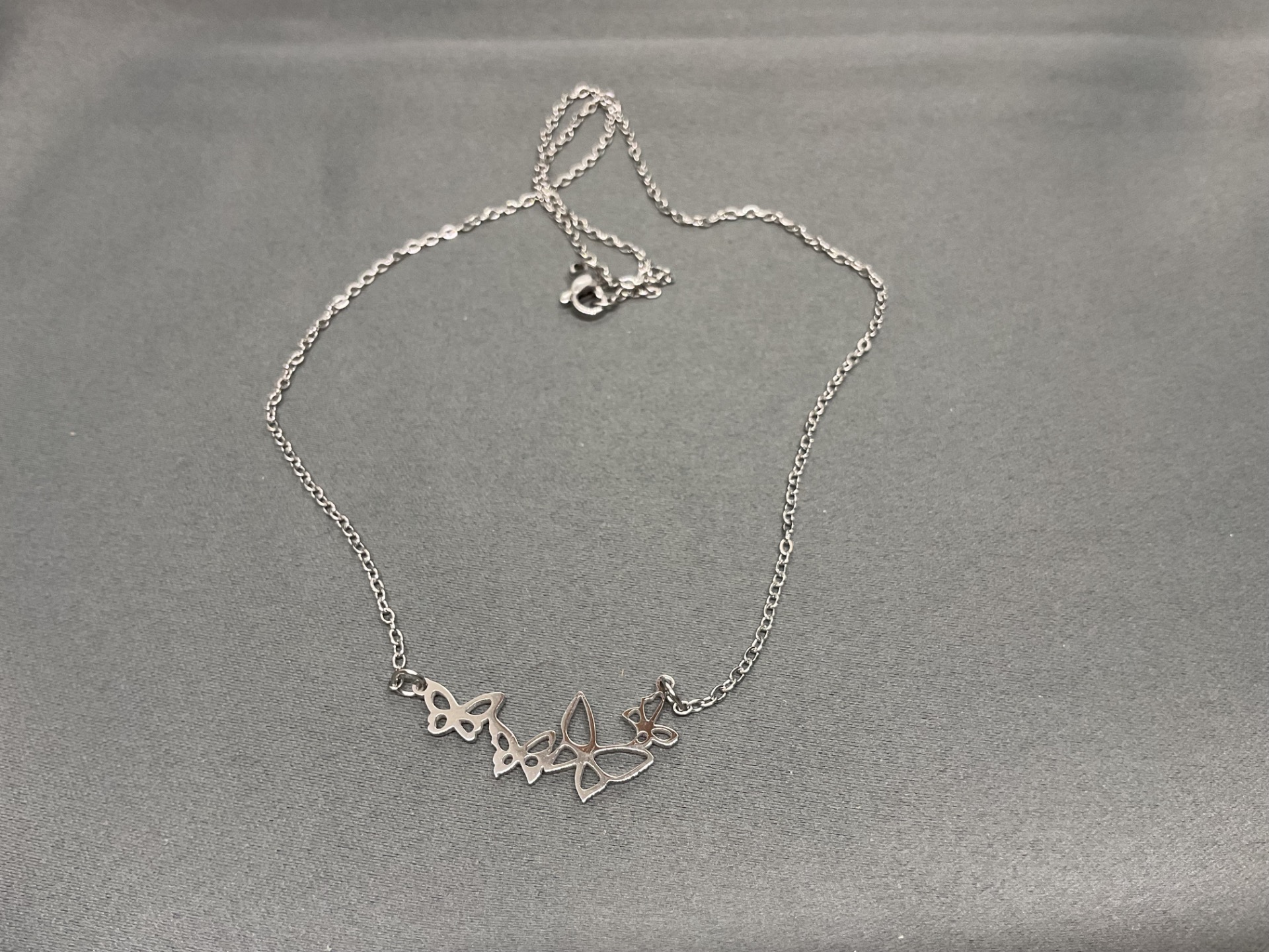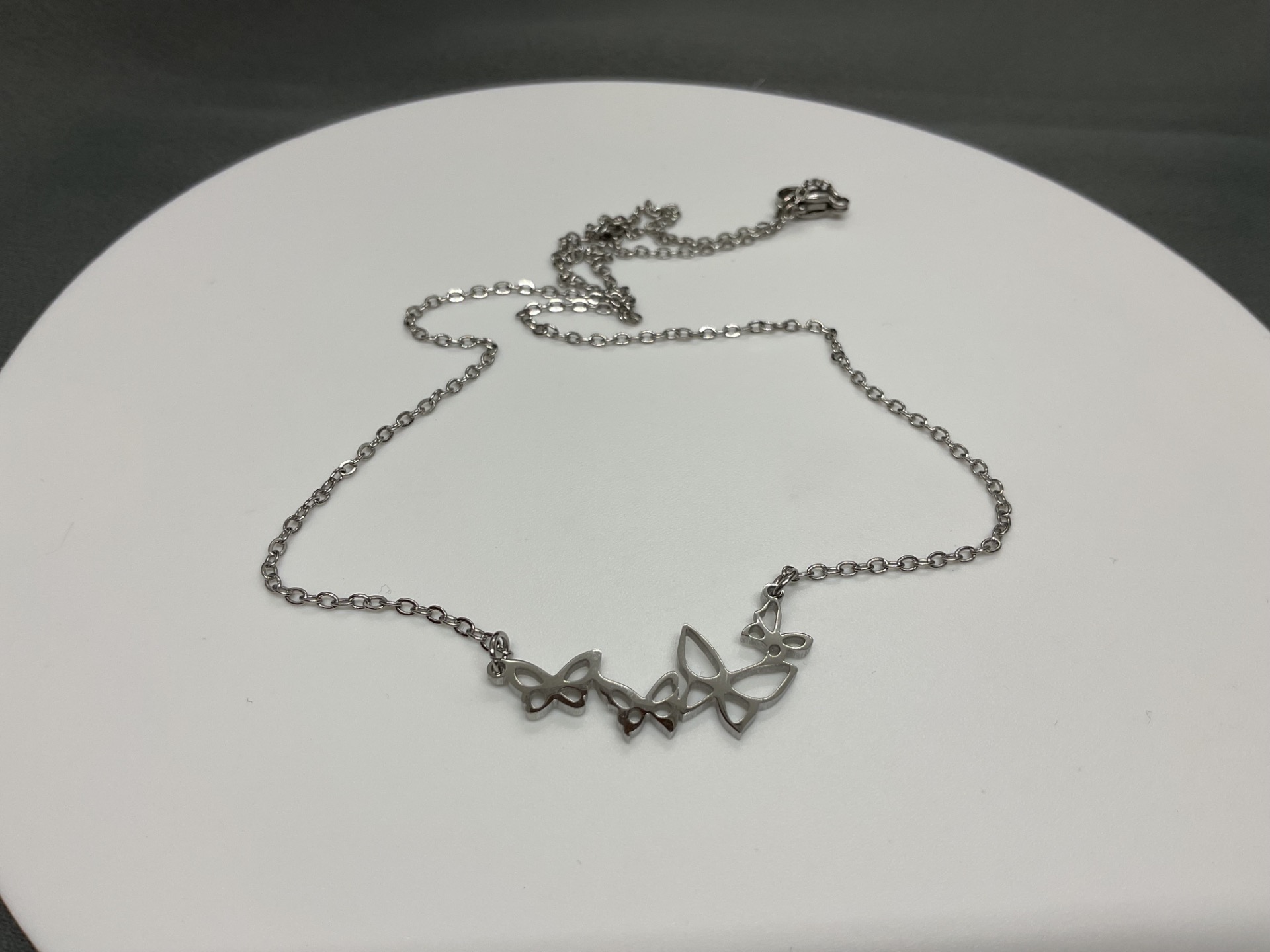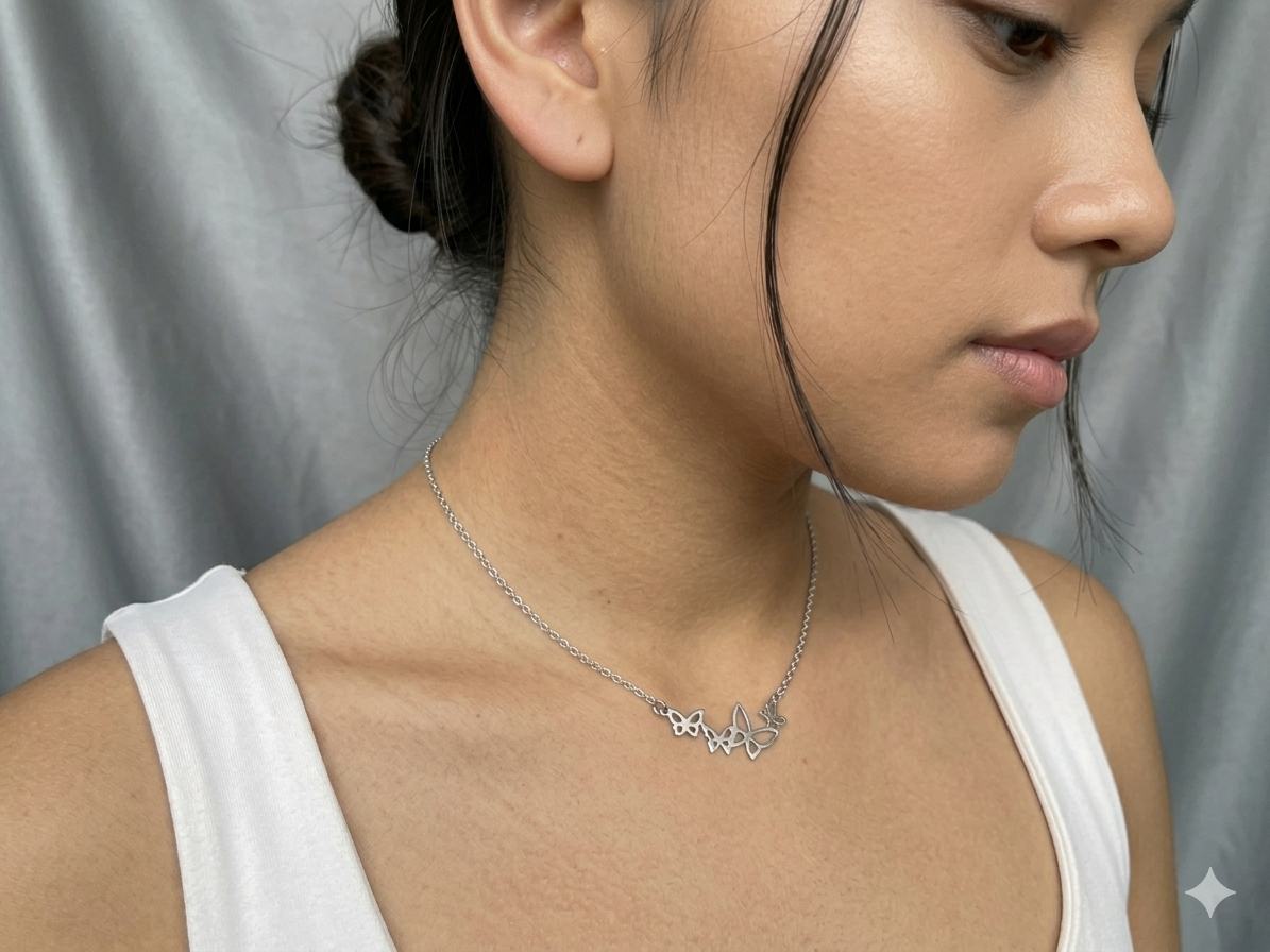 Simte libertatea și delicatețea naturii cu acest colier superb, decorat cu un grup de fluturași delicați. Designul central surprinde patru siluete de fluturi într-o compoziție fluidă, oferind un aspect modern și jucăuș. Este o piesă versatilă, ideală pentru a fi purtată la baza gâtului, adăugând o notă de prospețime oricărei ținute, de la cămăși de mătase la rochii vaporoase de vară.