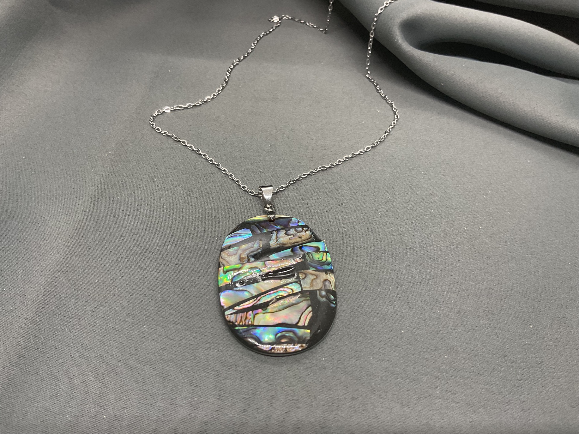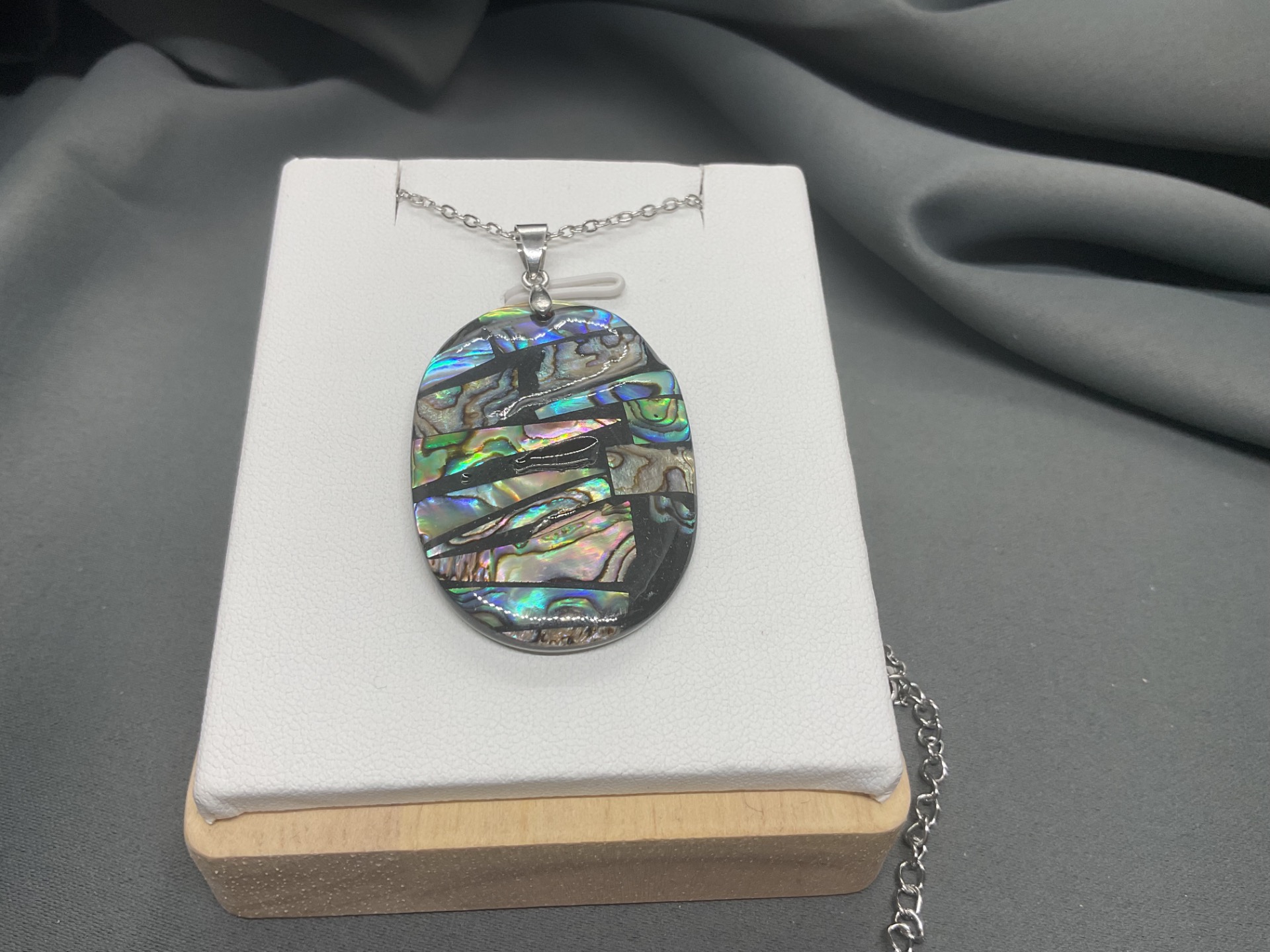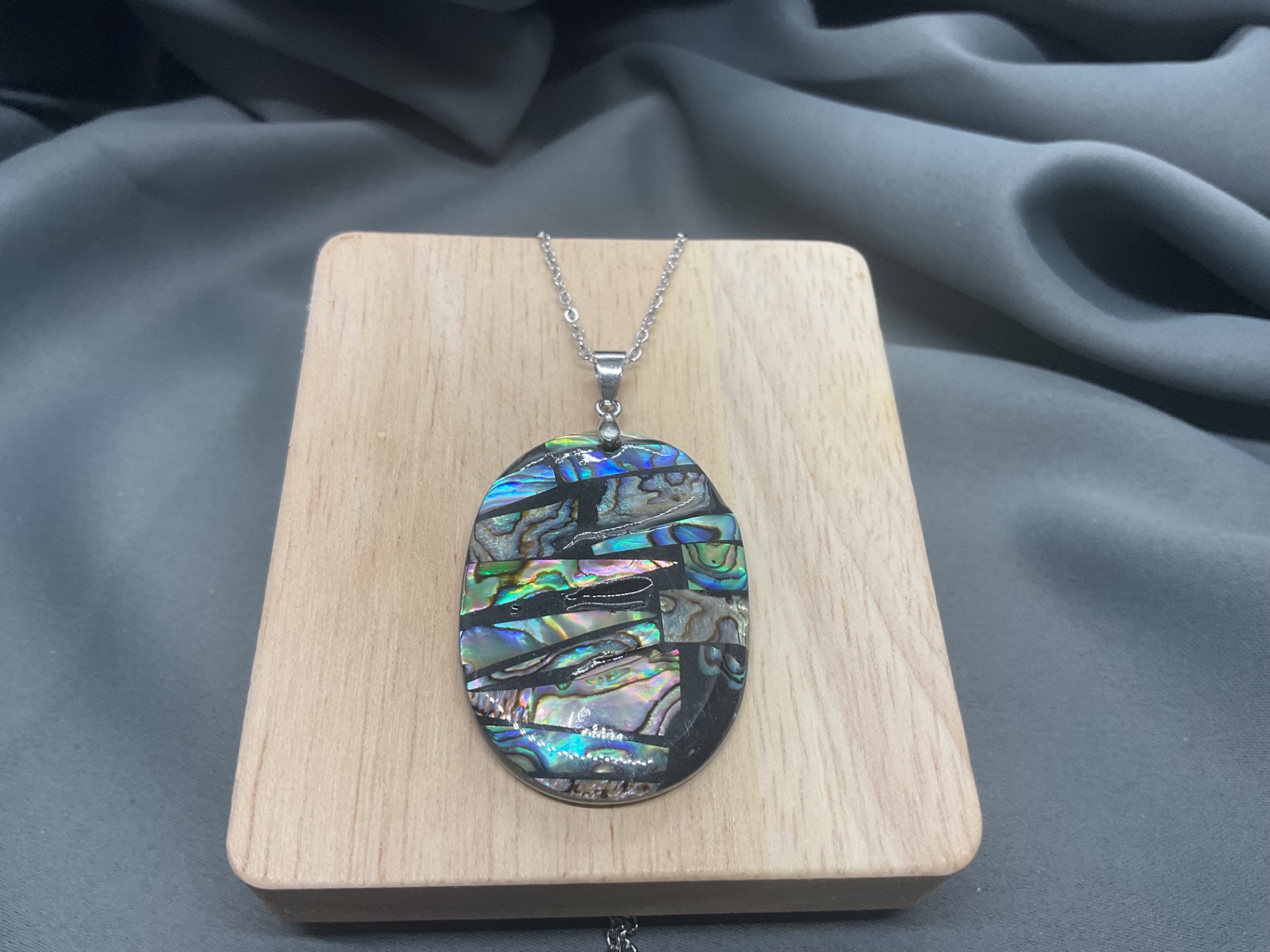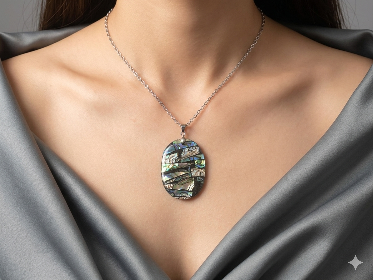 O piesă de o eleganță atemporală. Colierul "Lumina Lunii" pune în valoare frumusețea hipnotizantă a scoicii Paua printr-o formă ovală armonioasă. Dimensiunea generoasă a pandantivului (4x3 cm) și reflexiile sale multicolore fac din acest colier un accesoriu care va atrage toate privirile, oferind o strălucire naturală oricărei ținute.