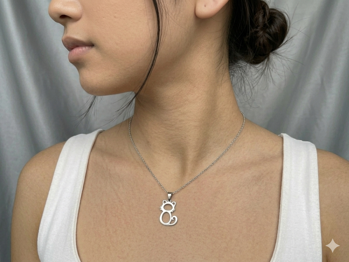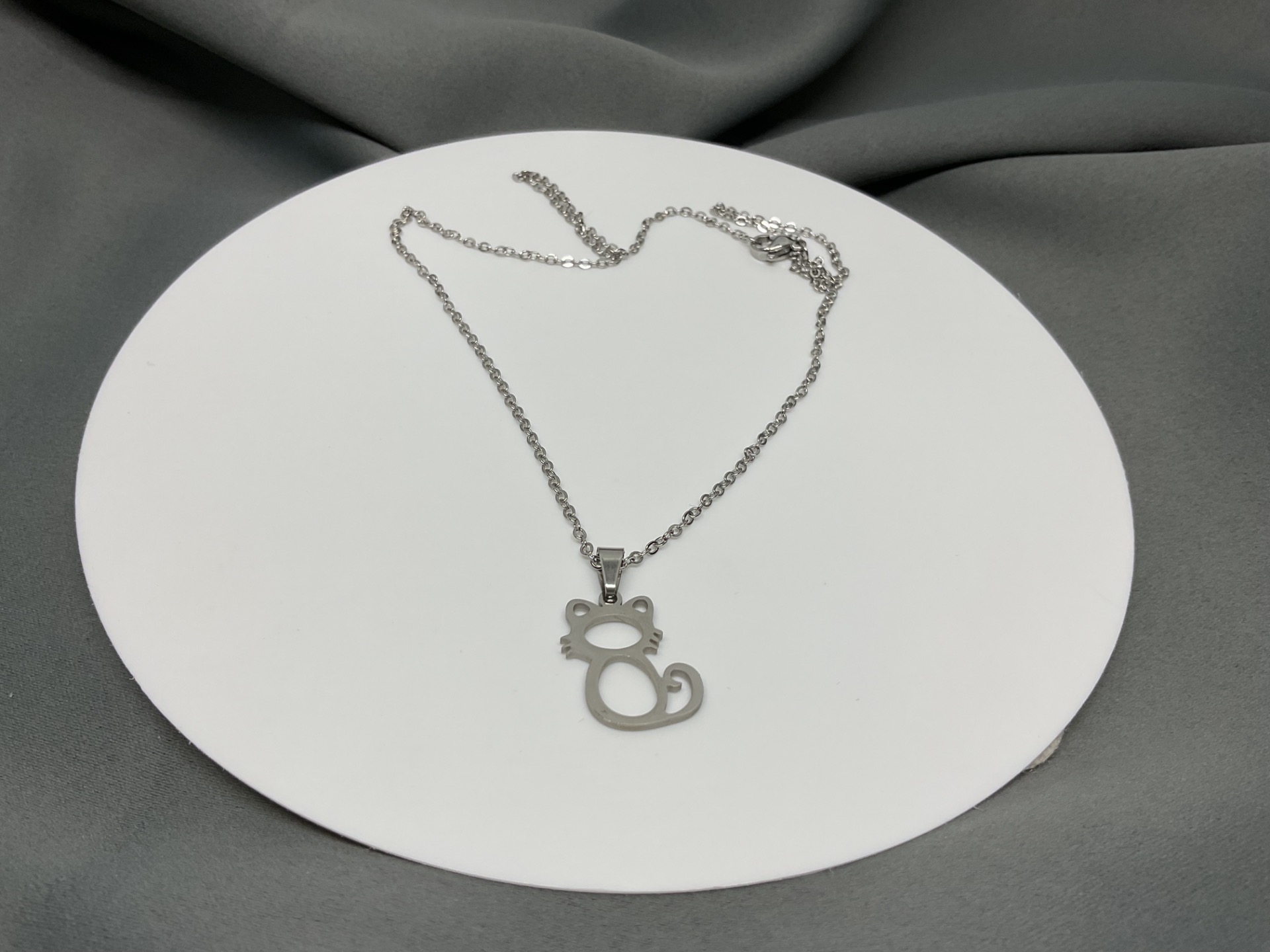 Adaugă o notă de farmec ținutelor tale cu acest colier delicat, ce surprinde silueta unei pisici curioase. Designul decupat și finisajul lucios fac din această bijuterie un accesoriu versatil, ideal pentru iubitoarele de animale care apreciază stilul minimalist. Este o piesă care vorbește despre grație, curiozitate și o conexiune specială cu micile feline.
