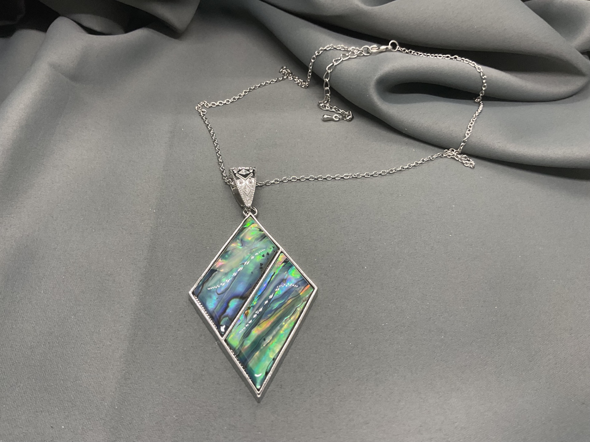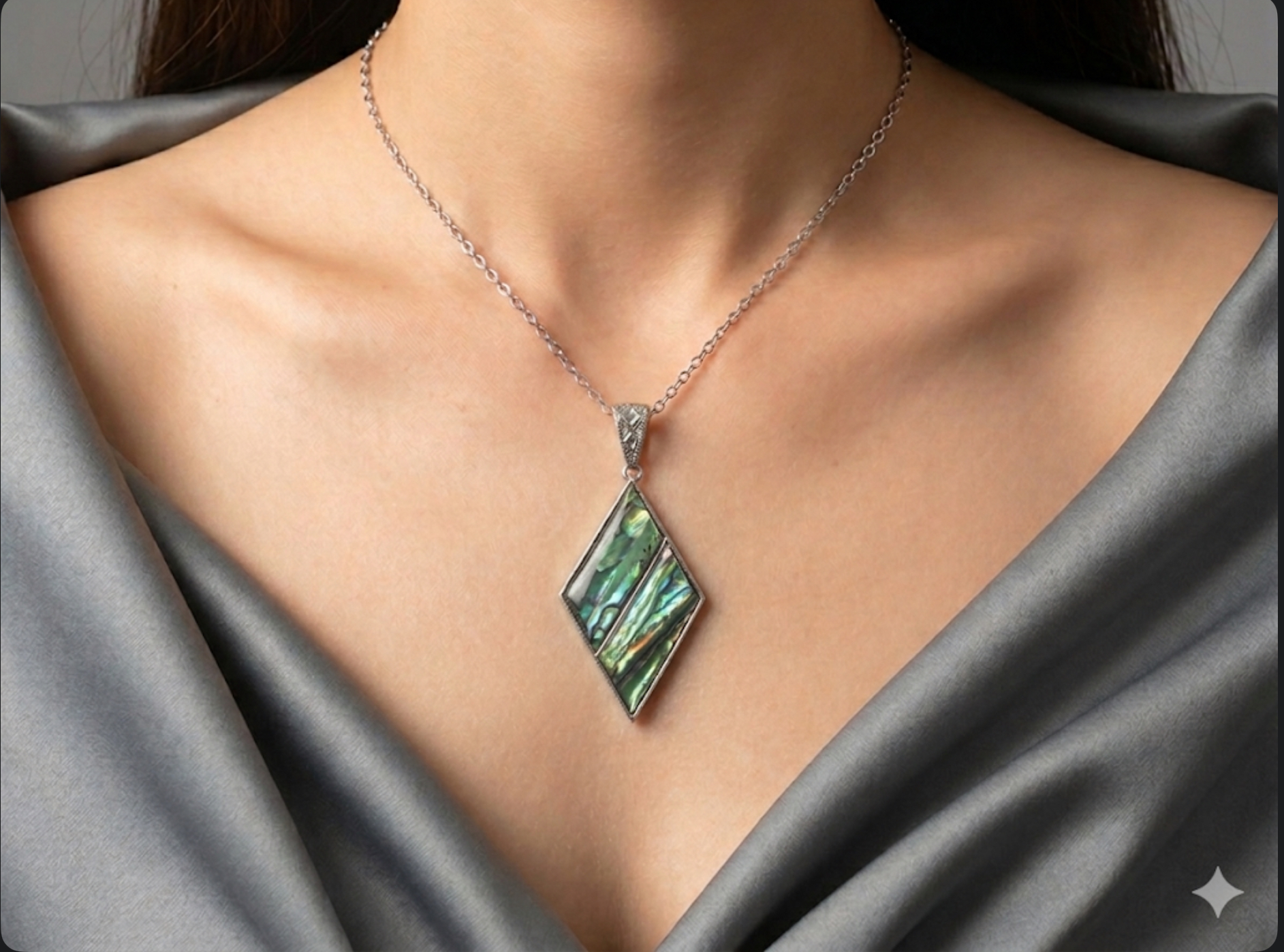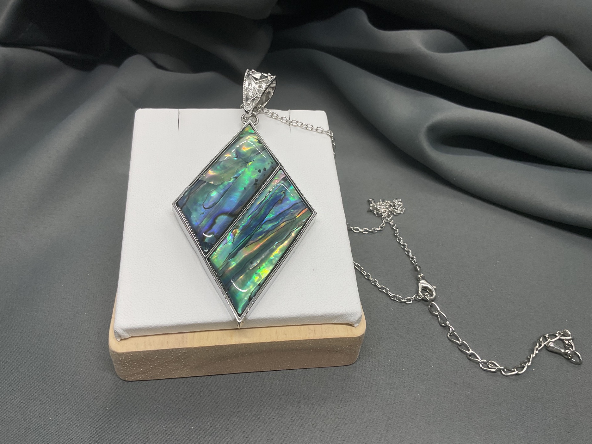 Puterea naturii într-o formă impunătoare. Colierul "Misterul Pacificului" este definit prin pandantivul său generos în formă de romb, care acționează ca o fereastră către culorile vii ale oceanului. Cu o prezență vizuală inconfundabilă, acest colier transformă orice apariție într-o declarație de stil și eleganță exotică.