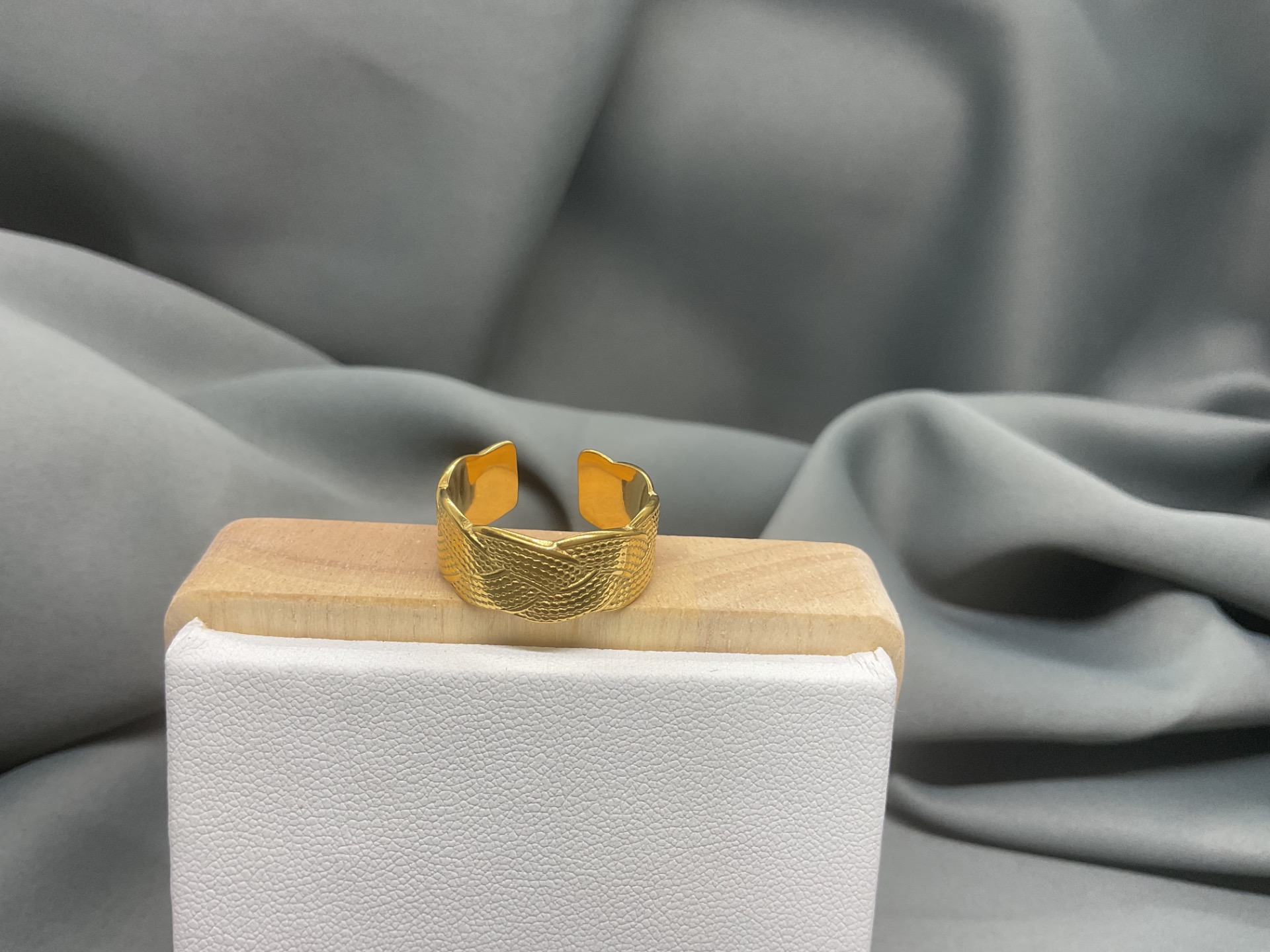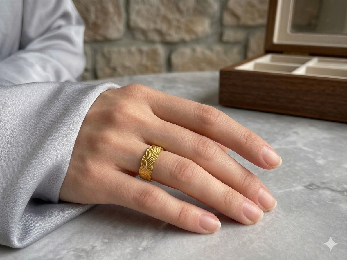 • Design Texturat: Modelul împletit oferă un aspect tridimensional, fiind mult mai interesant vizual decât un inel simplu.